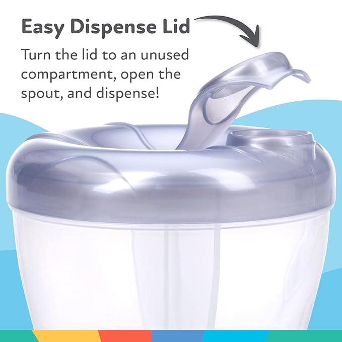 • Make feedings easier at home or on the go. With Nuby’s Milk Powder Dispenser keeping your little one satiated is as easy as 1, 2, 3
