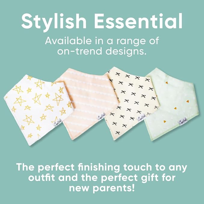 • GREAT FOR GIFTING: Thoughtfully packaged and always on-trend, Copper Pearl bibs come in a 4-pack and make the perfect baby shower gift for style-conscious parents.