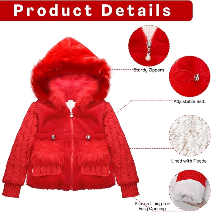 • Design: Toddler baby girls winter warm fur outerwear, solid color long sleeve zipper hooded coat.which is lovely, warm and practical.