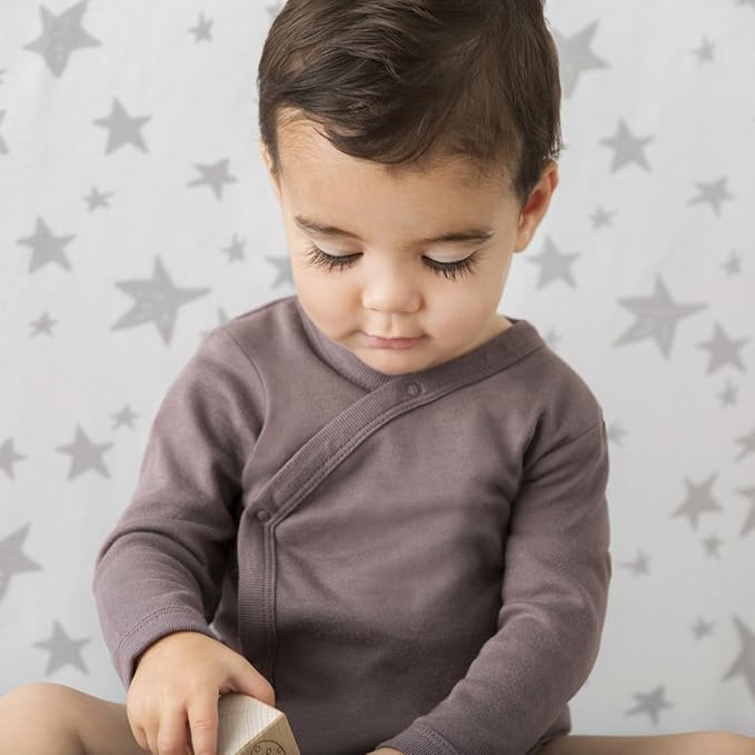 Babysoy Unisex Newborn, Infant, & Baby Long Sleeve Kimono Wrap Around Side-Snap Organic Bodysuit Onesies Onepiece