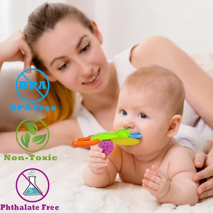 • GOOD QUALITY : BPA free.Teether rattle set baby toy is made of durable ABS plastic, non-toxic material.It's safe for children to get it in mouth or chew on.