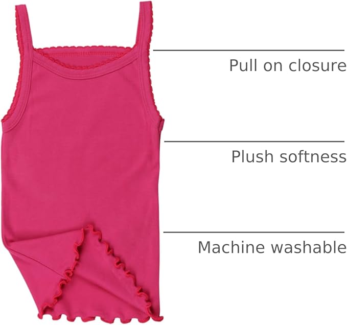 • Grab these soft plain solid color or assorted print spaghetti strap tank tops with cute ruffle hem design for your daughter! These tanks offer plush softness for everyday basics, given their ultrafine 100% Cotton composition. Thin enough for everyday basic wear or as undershirts. Also available for baby girls.