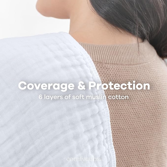 Comfy Cubs Muslin Burp Cloths 20" x 10", Pack of 6 - Large, 6-Layer, Ultra Absorbent 100% Cotton for Baby Spit-Up, Drool, and Messes - Soft, Safe & Gentle Baby Burp Cloths Set for Boys & Girls - White