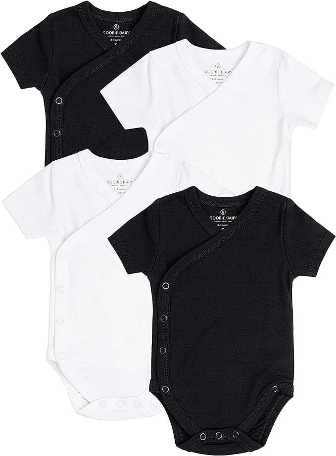 Baby Side Snap Bodysuit Set, 100% Cotton Boy Girl Unisex Kimono Onesie, 4 Pack