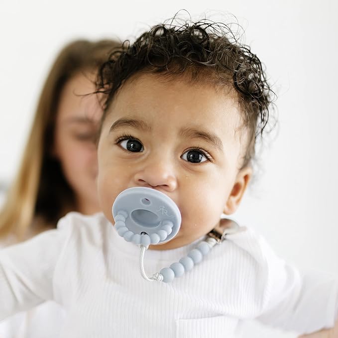 • SOOTHING AND COMFORTABLE – Soft nipple on baby paci gently mimics breastfeeding for natural palette development while soother feels good on baby's gums.