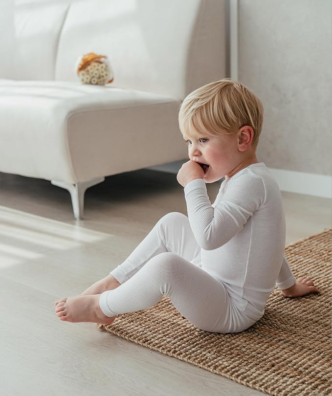 • COMFORTABLE FABRIC - This stylish pj set is a perfect blend of multi-functional style and comfort ribbed knit. Viscose rayon is like a smooth material similar to silk breathable, similar to cotton in this regard. Enough to help protect child's delicate skin. That's why pajama set is Easy to dye, light weight, and natural material. It will give perfect fit.