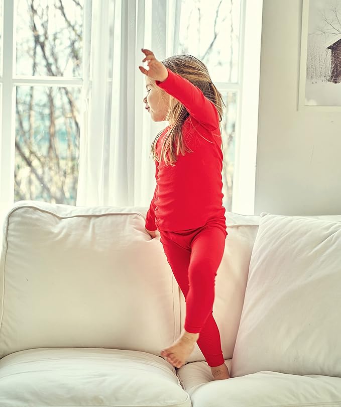 • COMFORTABLE FABRIC - This stylish pj set is a perfect blend of multi-functional style and comfort ribbed knit. Viscose rayon is like a smooth material similar to silk breathable, similar to cotton in this regard. Enough to help protect child's delicate skin. That's why pajama set is Easy to dye, light weight, and natural material. It will give perfect fit.