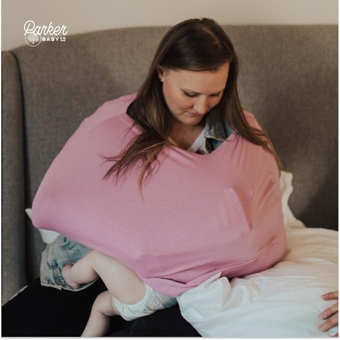 Parker Baby Co. 4 in 1 Car Seat Cover for Girls and Boys - Stretchy Carseat Canopy, Nursing Cover, Grocery Cart Cover, High Chair Cover - Lily