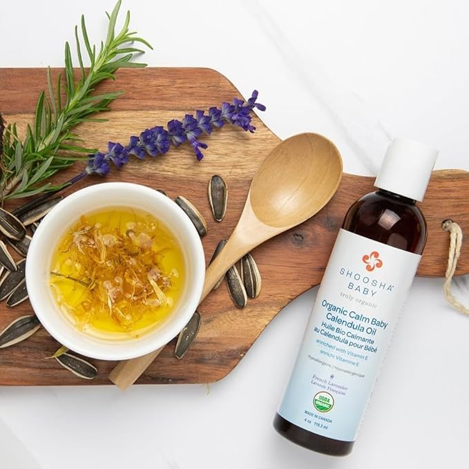 Shoosha Organic Calendula Oil Fragrance Free, for Babies, Real Calendula Oil, Calendula Massage Oil Moisturizer, Hypoallergenic, Gluten-Free, 100% Biodegradable
