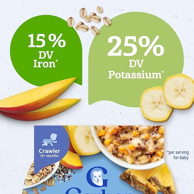 • TASTY MORNINGS: Gerber oatmeal makes an easy and nutritious baby breakfast. Ready to eat in under 5 minutes, this organic baby oatmeal with quinoa, farro and tropical fruit is perfect for busy parents who seek quality and convenience