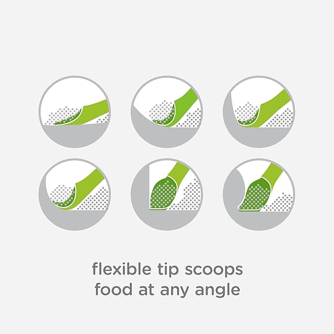 • Training Spoon- Encourages self-feeding. Flexible material to scoop food at any angle and protects fragile gum and newly erupted teeth