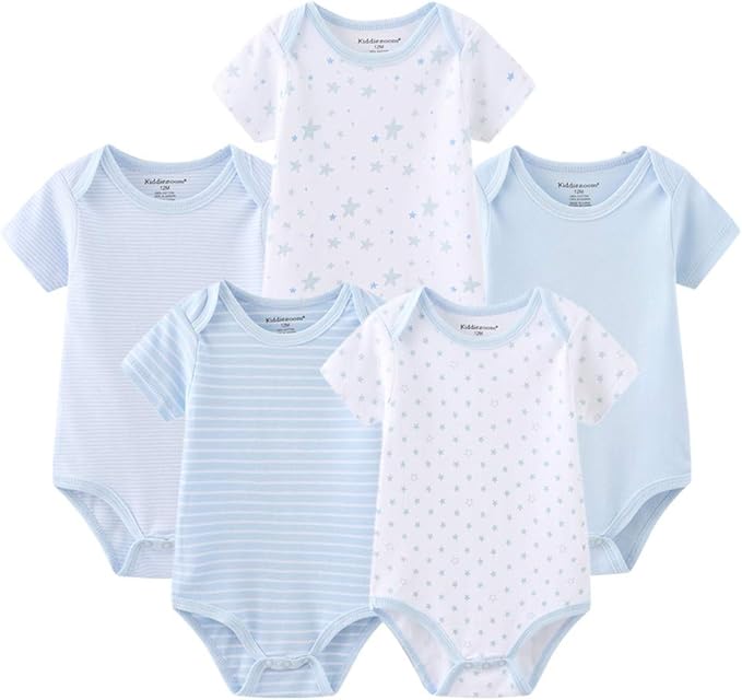Kiddiezoom Baby Bodysuit Newborn Short Sleeve baby One-Piece Cotton 5-Pack baby clothes