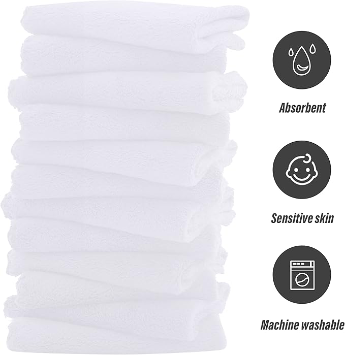 Sunny zzzZZ Ultra Soft 24 Pack Baby Washcloths - 10x10 Inches - Coral Fleece Extra Absorbent Wash Clothes for Babies, Infants and Toddlers - Sensitive Skin and Newborn - Ideal Baby - White