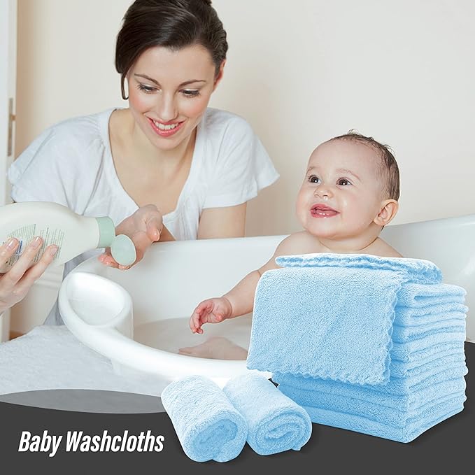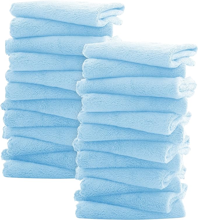 Sunny zzzZZ Ultra Soft 24 Pack Baby Washcloths - 10x10 Inches - Coral Fleece Extra Absorbent Wash Clothes for Babies, Infants and Toddlers - Sensitive Skin and Newborn - Ideal Baby - Aquamarine