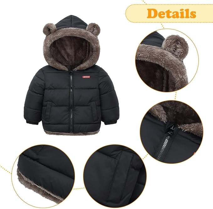 • Features------Zipper closure, Elastic cuff , Hoodie with Ear, 2 Pockets, Filled cotton lining.