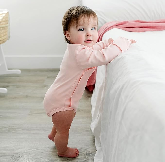 • Easily change your baby with side snap closure. Open up the onesie just like a shirt and place your baby inside. Wrap the sides and close the snaps on the side and at the bottom. No need to disturb your little one and have to pull the shirt over the head.