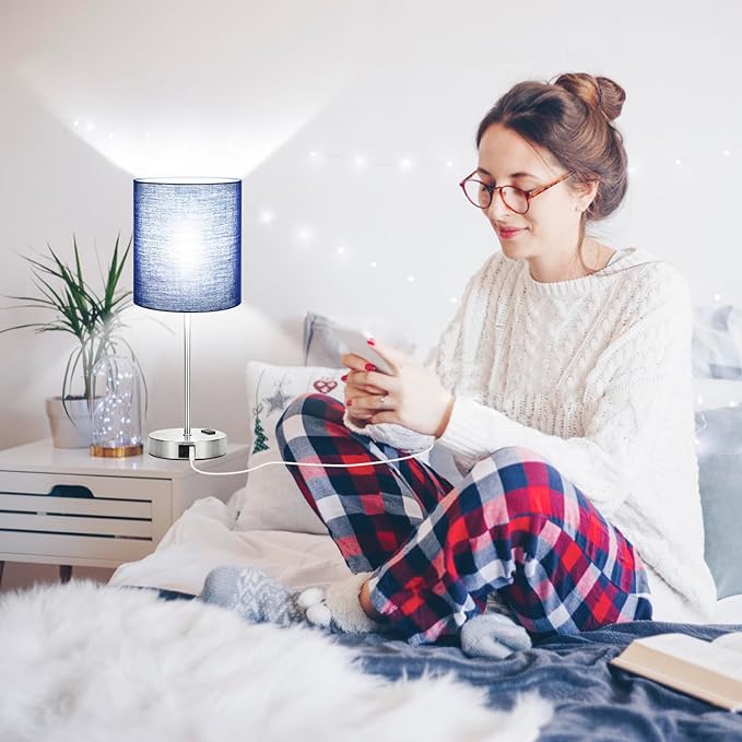 • ❤Eye-caring & Family Protection: This navy touch table lamp features an easy-to-install, all-in-one natural fabric lampshade. It minimizes direct eye contact, safeguarding your eyes against strain and fatigue. The lamp's weighted base with a non-slip mat and sturdy design makes it less prone to falling down or shaking, peace of mind for pets' protection.