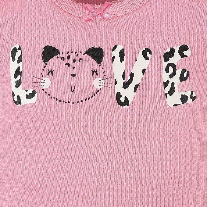 • One leopard print, two pink with allover leopards print, two charcoal with allover daisy print, one pink with screenprint, embroidery cat art with 3D applique ears, one pink/white striped, one pink with "Love" art