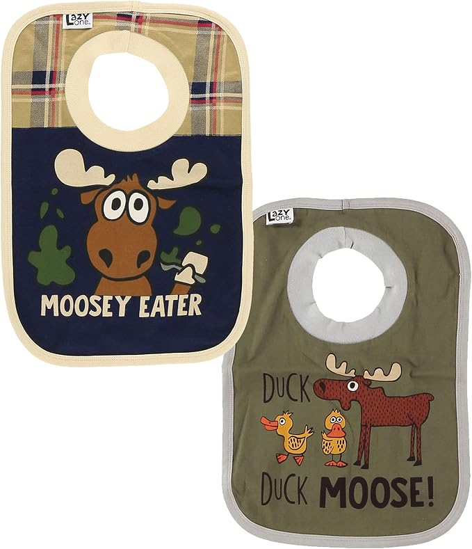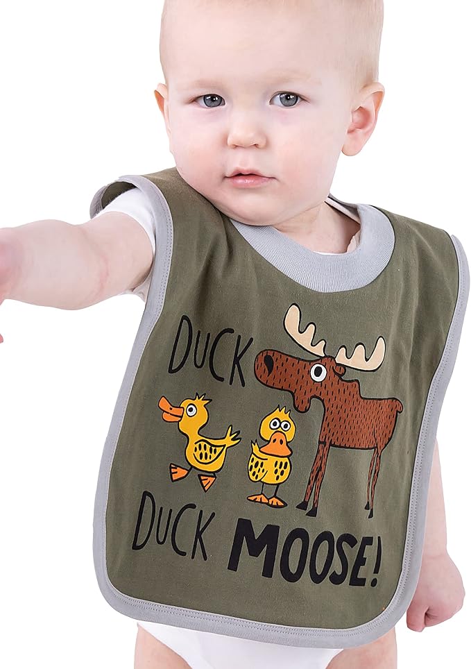 • CUTE & FUNNY DESIGNS: With moose and duck designs for hungry babies, these bibs will make your infant or toddler happy while protecting their clothes from food spills and other messes.