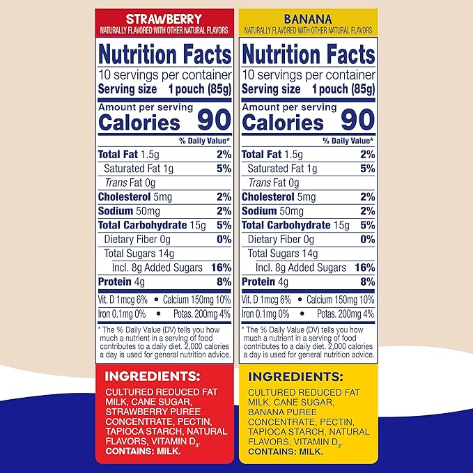 • Made from real yogurt and fruit, these kids yogurt pouches contain 4g of protein per pouch/serving, no preservatives and are a good source of calcium and Vitamin D** (**At Least 10% Of The Daily Value Per 6 Oz.)