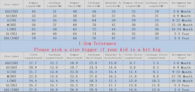 • Different designs would be in a bit different size level.The months size is just a recommend age.Please refer to the individual size chart for each design for your kid
