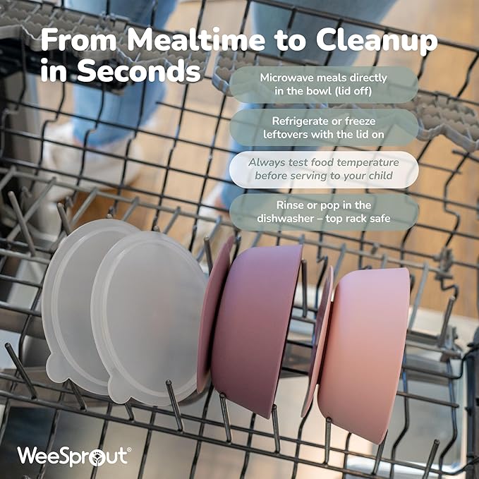 • ✅ DISHWASHER, MICROWAVE, & FREEZER SAFE SUCTION BOWLS FOR BABIES: Serve food, freeze and heat leftovers, then toss your infant feeding set in the dishwasher. No more dirtying multiple dishes for one meal! Your silicone baby food bowls are 100% dishwasher, microwave, and freezer safe. (*Remove lids before microwaving)