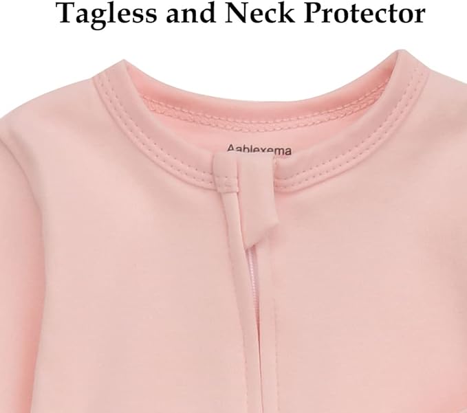 Aablexema Baby Footie Pajama with Mitten Cuffs, Double Zipper Infant Cotton clothes Sleeper Pjs, Footed Sleep Play