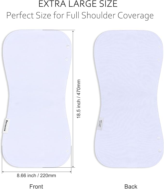 • 【 THE BURP CLOTHS AND BIBS ARE PERFECT SIZE AND DESIGN】Each set of burp cloths comes in a 12 pack, extra large size 8.66 X 18.5 inches. The center curve is shaped and sized so it covers your entire shoulder or forearm while holding your baby or burping, and it won't slide. No more burps and spit-ups staining baby's clothes and mom's clothes, ideal for absorbing messy drool