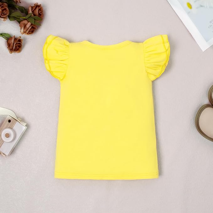 • Design: Simple and fashion basic style top, ruffle sleeve design solid color t-shirt. Spring, Summer, Autumn, and Winter ruffle-sleeved Bottom blouse tops, The T-shirt features a ruffled edge design, adding a playful and cute element, making the girl more adorable and charming when wearing it. Multiple colors available, Meet the matching needs of little girls on different occasions.