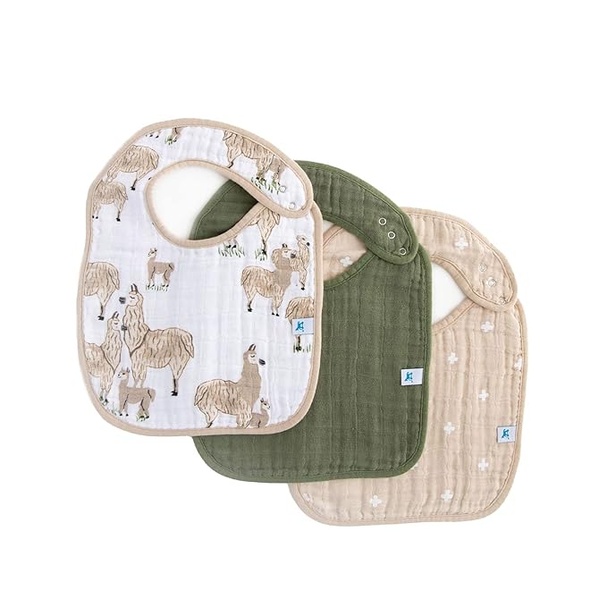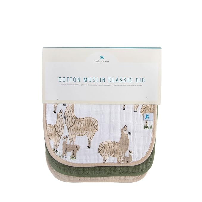 Little Unicorn Premium Classic Bib 3 pack | Adjustable as baby grows | Soft fabric on skin | Great for first time eaters (Llama Llama)