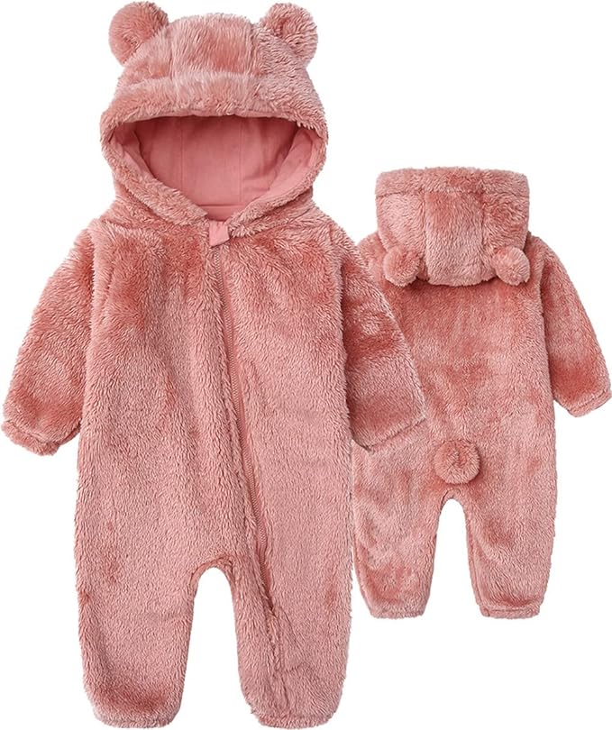 • Design:fleece warm Jumpsuit coat,full cover zipper design,easy to pull on and take off,convenient to change baby diapers. It has two bear ears on both sides of the hat and bear tail, which makes your baby look great.Plush materials are easy to wash whether hand washed or machine washed