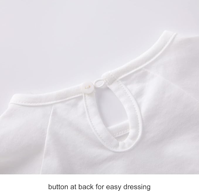 • EASY TO WEAR - Button closure at center back leaves plenty of room to pull over baby's head. Snaps at bottom makes changing diaper hassle-free