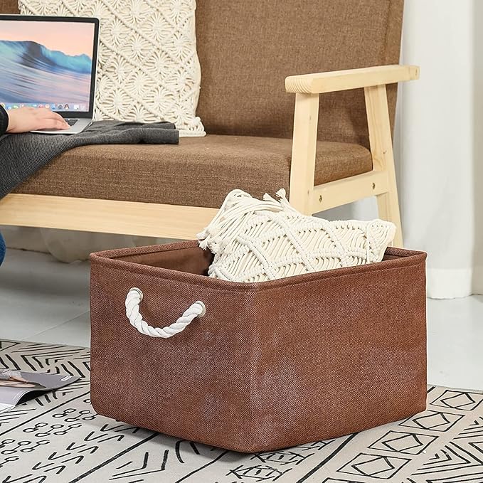 TheWarmHome Organization and Storage Basket for Organizing - 17x14x10 inch 3 Pack Fabric Storage Cubes, Collapsible Storage Bins for Shelves Closet Organizer Toy Gift Cloth (Brown)