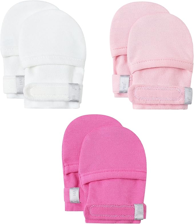 HAPIU Baby No Scratch Mittens Stay On, 100% Cotton Breathable, Adjustable Infant Gloves for Boys Girls, Newborn - 12 M