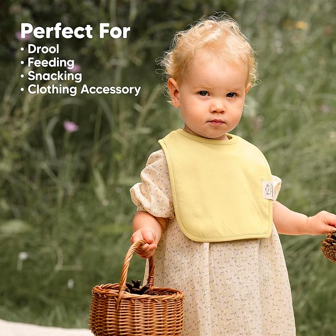 • 3 Adjustable Sizes With Soft Seams - With 2 sets of nickel-free snaps, you can adjust the girl and boy bibs according to your baby’s neckline. The soft-wrapped seams provide extra comfort for your baby while having the baby cloth bibs on.