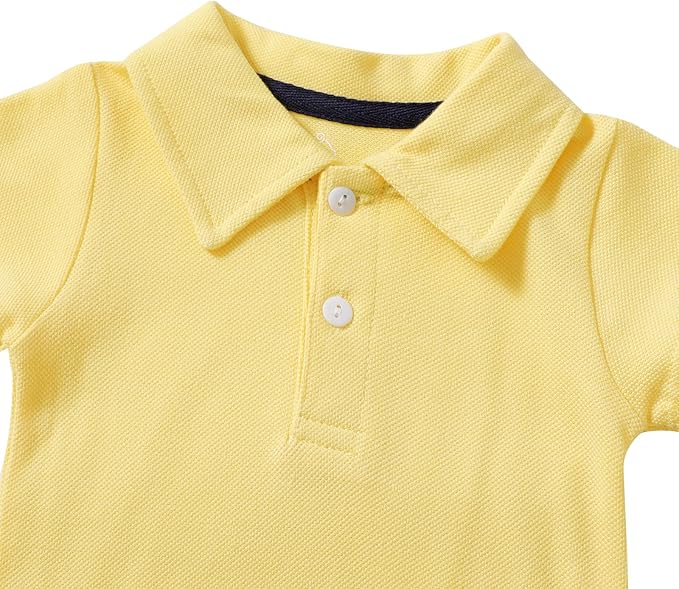 • 【Package Include】Newborn baby boy collared polo onsies bodysuit short sleeve solid pique romper mesh bubble clothes Yellow 1-pack 3-6 months