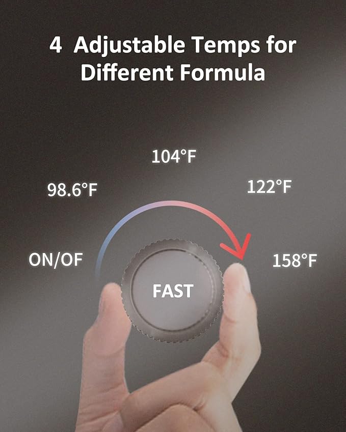 • ๐Ÿฐ ๐—ง๐—ฒ๐—บ๐—ฝ๐˜€ ๐—”๐—ฑ๐—ท๐˜‚๐˜€๐˜๐—ฎ๐—ฏ๐—น๐—ฒ: 4 temps (98.6ยฐF; 104ยฐF; 122ยฐF; 158ยฐF) specially designed to accommodate with different formula and baby preference. The ideal formula feeding temp is body temp 98.6ยฐF, since itโ€™s the same as fresh breast milk. You can also use it as drinking water dispenser at 104/122ยฐF set. Plus, the water temperature can get as high as 158ยฐF.