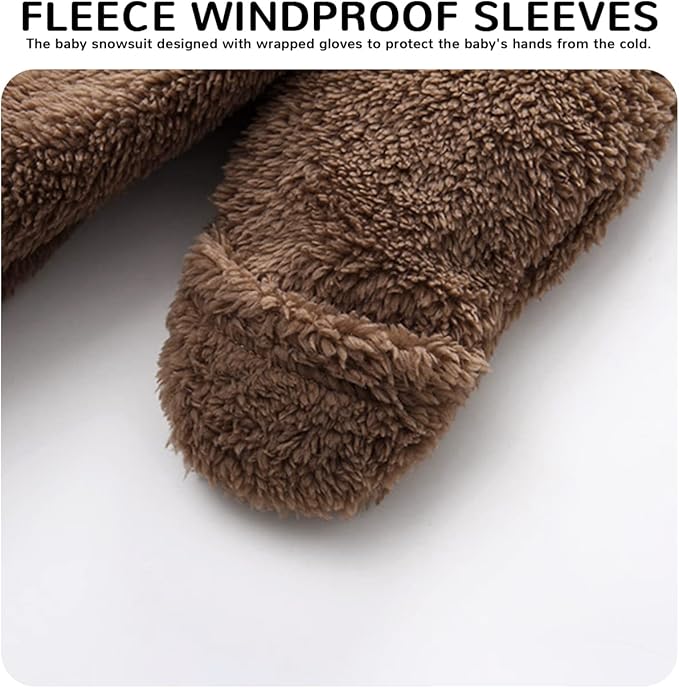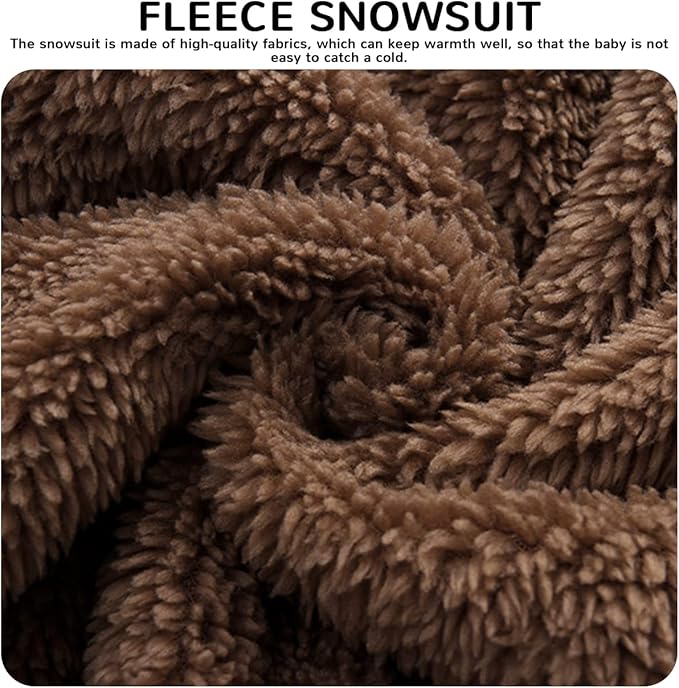 • ❤♥Material: This baby snow suit made of high quality polyester fiber, double lining, fine polyester fiber cares for baby's delicate skin. The newborn winter outfit hoodie whole body jumpsuit design, keeps the baby's head and ears inside and warm when outing. The toddler boys & girls snow suit accompanies the baby through the cold winter.