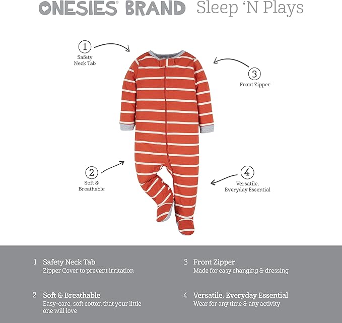 Onesies Brand baby-boys 4-pack Sleep 'N Play Footies