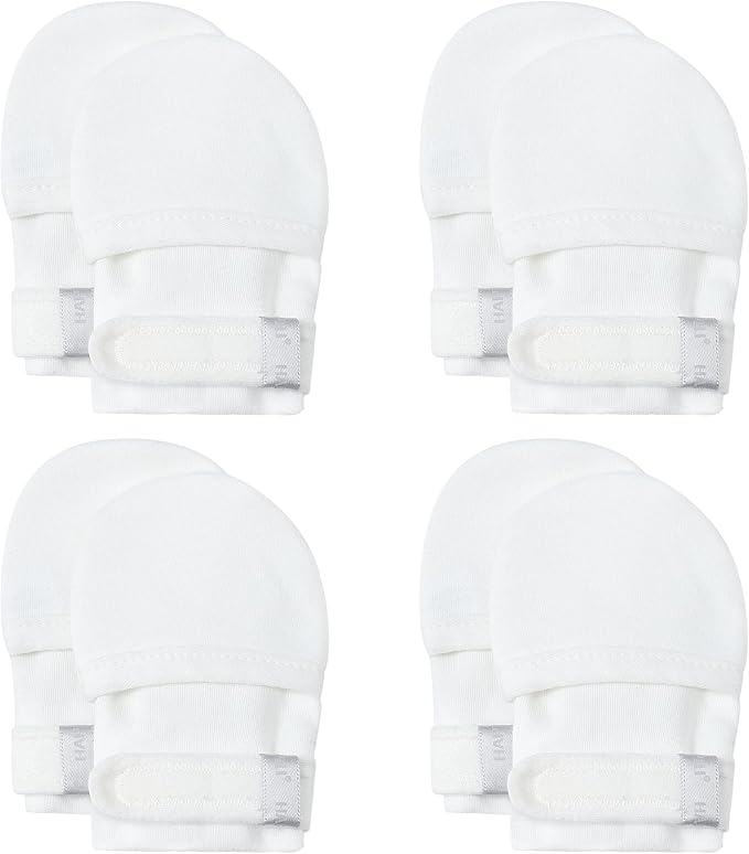 HAPIU Baby No Scratch Mittens Stay On, 100% Cotton Breathable, Adjustable Infant Gloves for Boys Girls, Newborn - 12 M