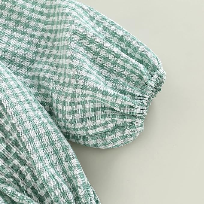• 【Festival Baby Girl Clothes】: baby girl romper, patchwork design, bowtie on back,with cute headband, classic color, plaid romper