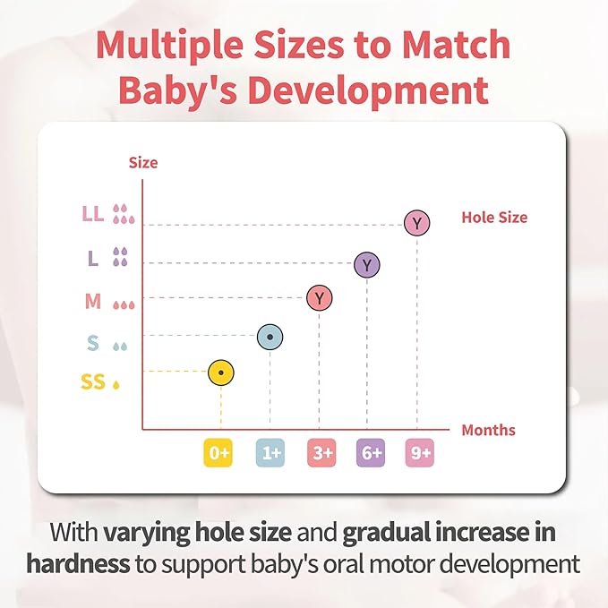 • SOFT AND FLEXIBLE SILICONE NIPPLE: For seamless switch between breast and bottle. It’s super soft and flexible to allow for natural and smooth tongue movement. Latch-on Line: The new design with latching curve of the nipple is guiding for baby’s appropriate latch, so as to achieve effective adsorption.