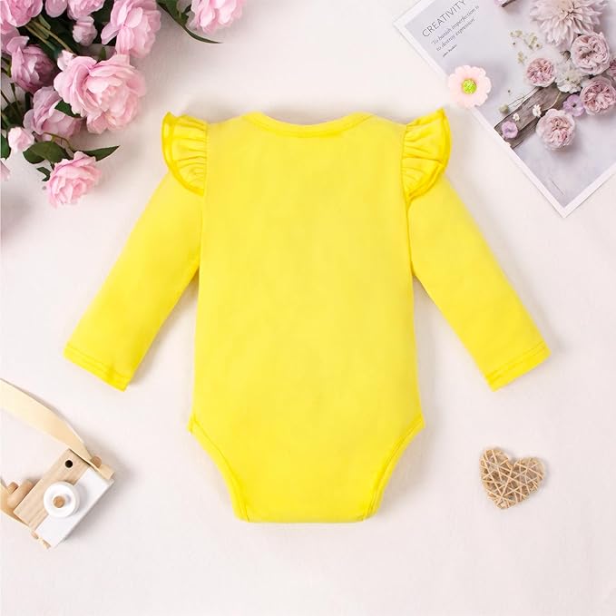 • Fit for 0-3 months newborn girl romper 3-6 months infant girl bodysuit 6-9 months baby girl jumpsuit 9-12 months baby girl shirts 12-18 months toddler girl tops 18-24 months girls ruffle sleeve clothes.