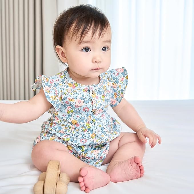 • FASHION STYLISH DESIGN - Features allover flower prints, ruffled sleeves, cinched waist and elastic leg opening. This floral bodysuit makes your baby girl look more attractive