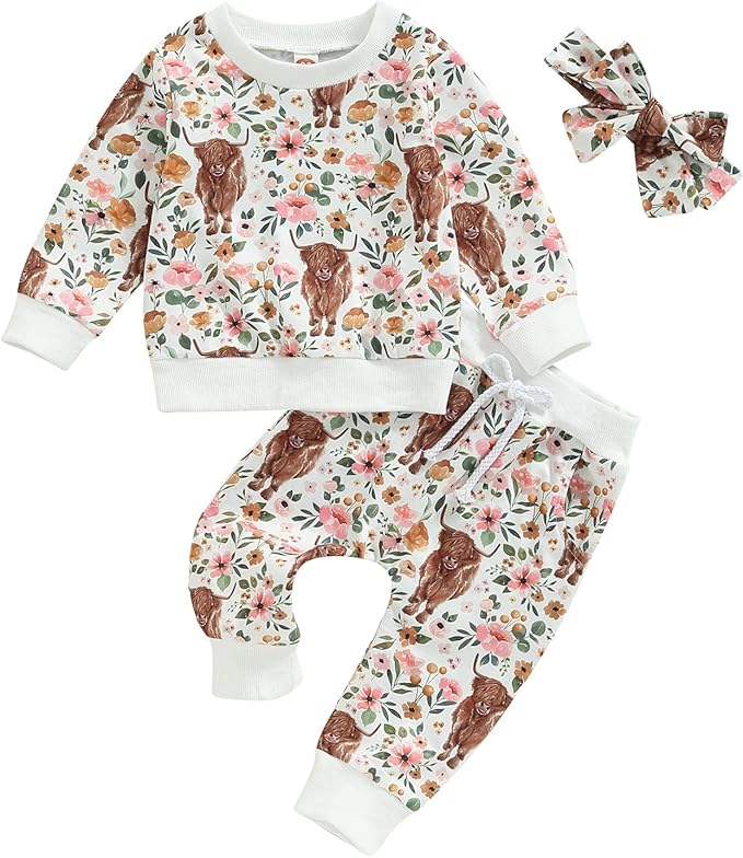 • 🏵️ Package included: 1*Sweatshirt Tops + 1*Long Pants. 2pcs baby girl fall winter clothes