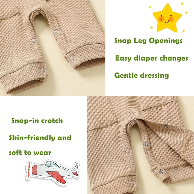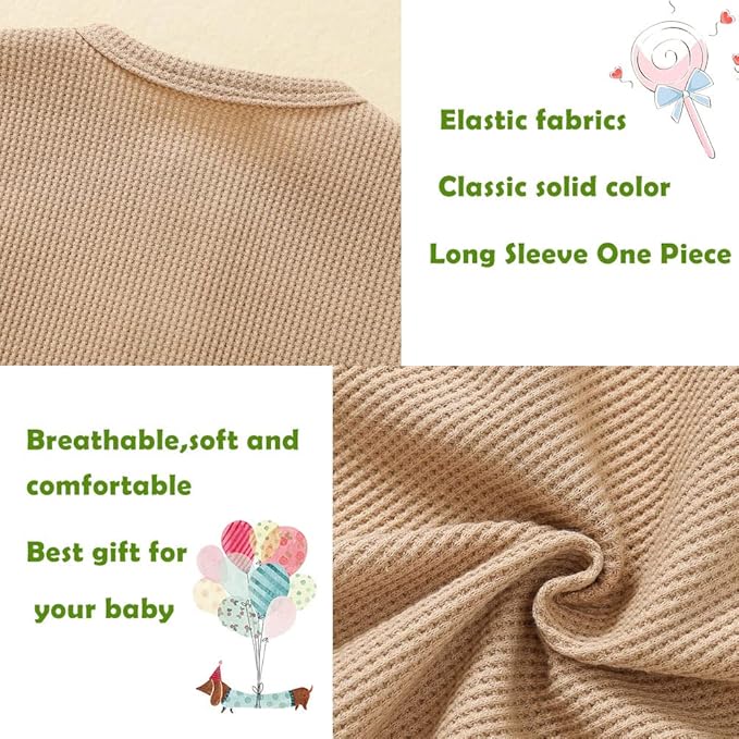 • Features:Baby jumpsuit pattern is solid color waffles,very simple, clean, and cute.This baby romper sets has a snug fit, making it great for any days