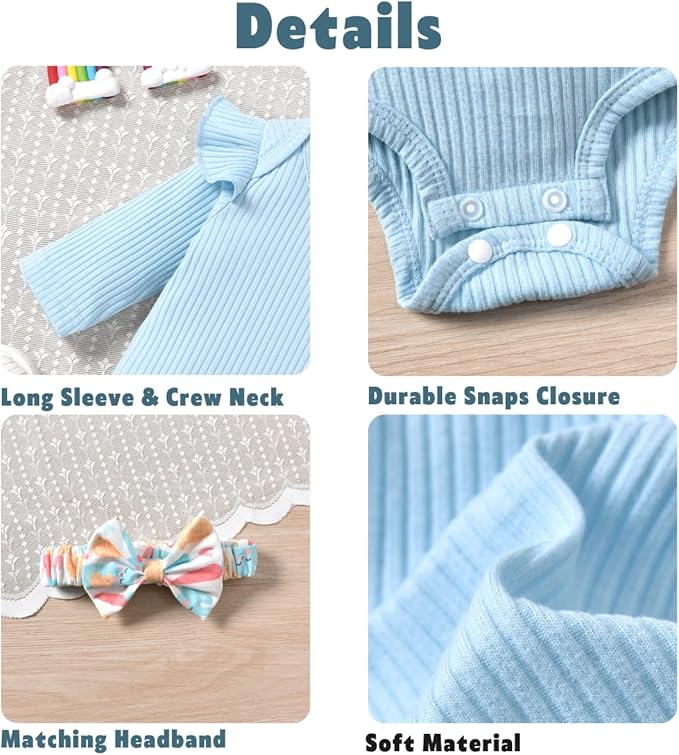 • EASY TO WASH : It's easy to wash whether hand or machine wash, the ribbed cotton can stayed soft after many washes. Machine wash with COLD WATER and line dry away from heat. To keep the baby girl clothes more as soft and comfy as possible!