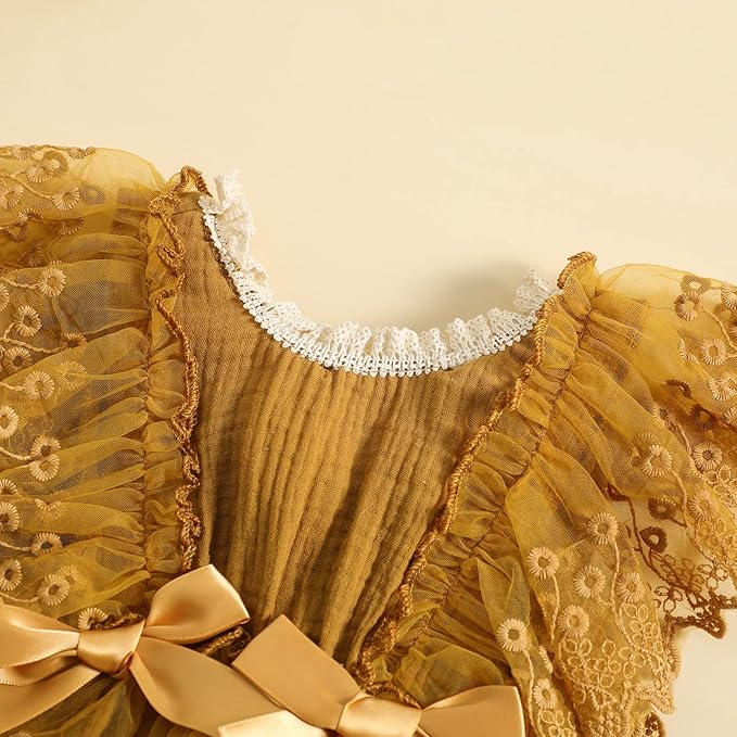 • Design:Adorable baby girl clothes newborn girl outfit, embroidery lace sleeve with bowknot one piece baby girl bodysuit, 2layers laces baby girl romper, so beautiful and special,great baby girl gift