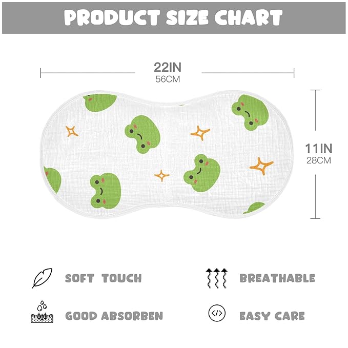 Muslin Baby Burp Cloths Set of 2, Soft Absorbent Cute Frog Muslin Washcloths, Bibs, Face Towel for Newborn Boys Girls, 22 x 11 Inch