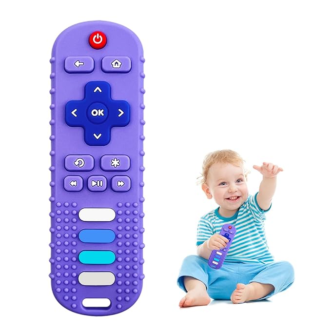 Silicone Teething Toys for Babies, Remote Control Shape Silicone Teethers, Cute Chew Toys for Boys and Girls,BPA Free Teether Early Educational Sensory Toy Purple